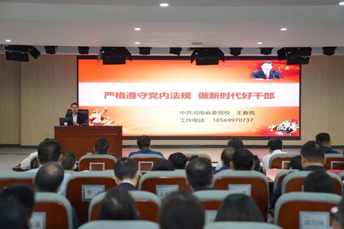 集團(tuán)黨委邀請(qǐng)河南省委黨校中共黨史教研部王春亮副教授,以《嚴(yán)格遵守黨內(nèi)法規(guī) 做新時(shí)代好干部》為題展開宣講。王教授分別從紀(jì)律嚴(yán)明是黨的光榮傳統(tǒng)和獨(dú)特優(yōu)勢(shì)、黨員干部嚴(yán)格遵守黨內(nèi)法規(guī)的迫切性和做嚴(yán)守黨內(nèi)法規(guī)好干部的主要著力點(diǎn)三個(gè)方面宣講,號(hào)召全體黨員干部要以黨紀(jì)學(xué)習(xí)教育為契機(jī),上好黨性鍛煉“必修課”。