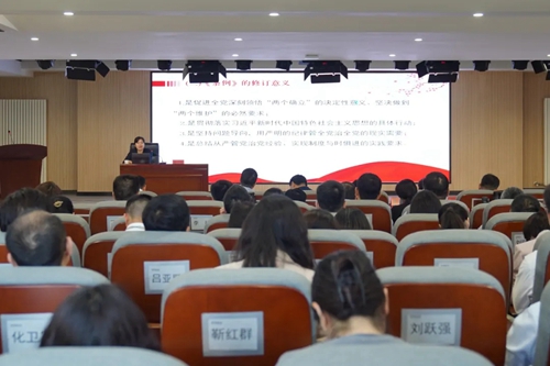 市紀(jì)委監(jiān)委駐城發(fā)集團(tuán)紀(jì)檢監(jiān)察組副組長(zhǎng)姬小靜,以《做遵規(guī)守紀(jì)的明白人》為題,分別從《條例》的歷史沿革、修訂意義、新變化和特點(diǎn)等方面,逐章逐條深度解讀新修訂的《中國(guó)共產(chǎn)黨紀(jì)律處分條例》。深刻領(lǐng)悟全面從嚴(yán)治黨的實(shí)踐要求,切實(shí)學(xué)出政治忠誠(chéng)、學(xué)出清正廉潔、學(xué)出擔(dān)當(dāng)作為。